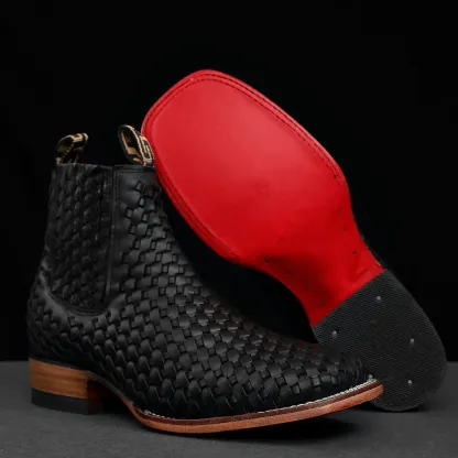 Black Basketweave Botin - Square Tie