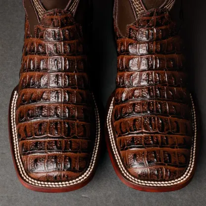 Brown Caiman Hornback Leather Boots - Square Toe