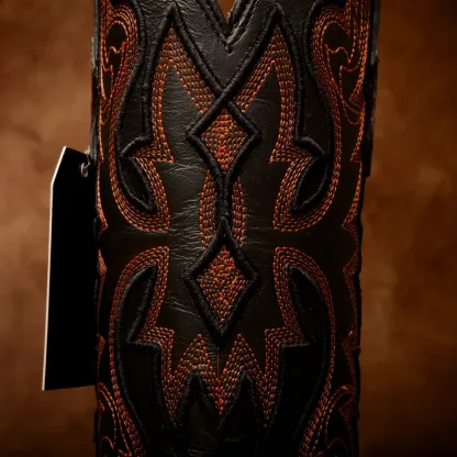 Cognac Caiman Neck Leather Boots - Square Toe