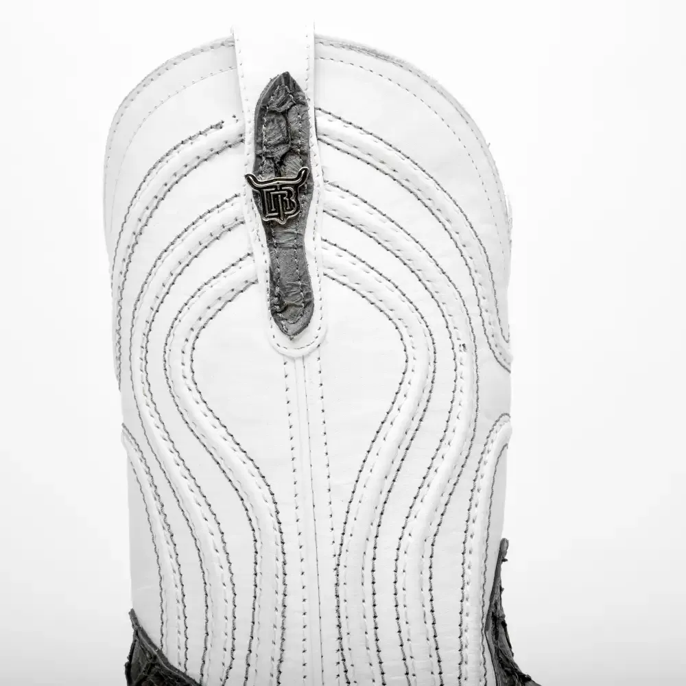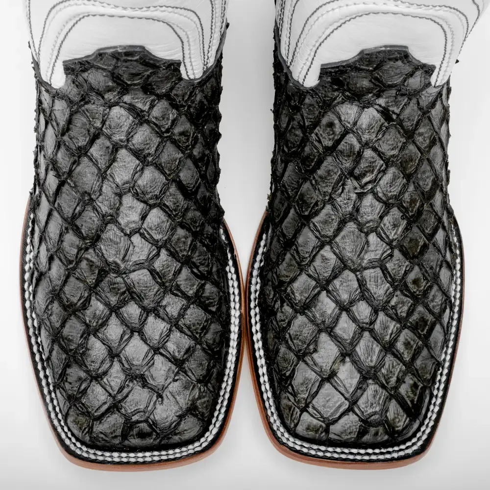 Grey Mini Pirarucu Leather Boots - Square Toe