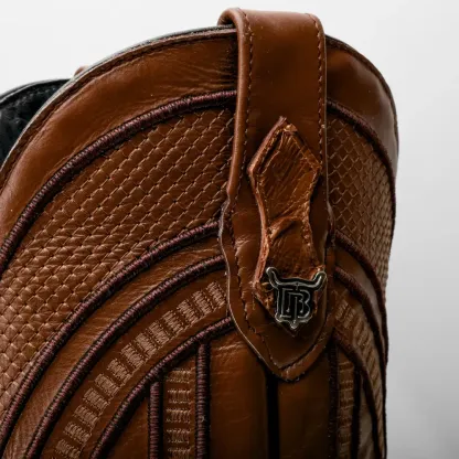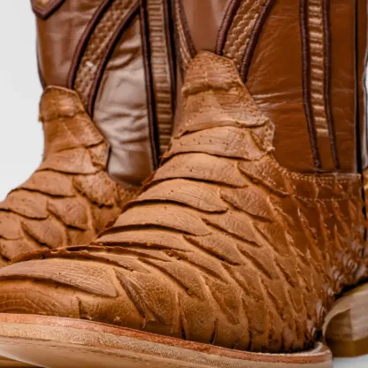 Matte Tan Jumbo Python Leather Boots - Square Toe