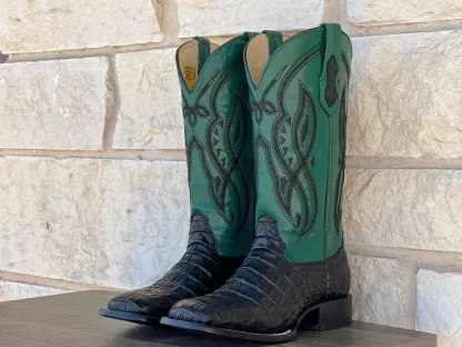 Men’s Black Crocodile Leather Boots With Green Shaft