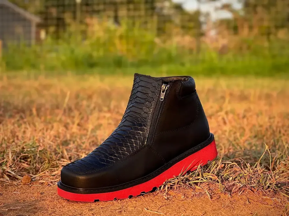 Men’s Black Python Cowboy Shoes With Ultra Light Sole