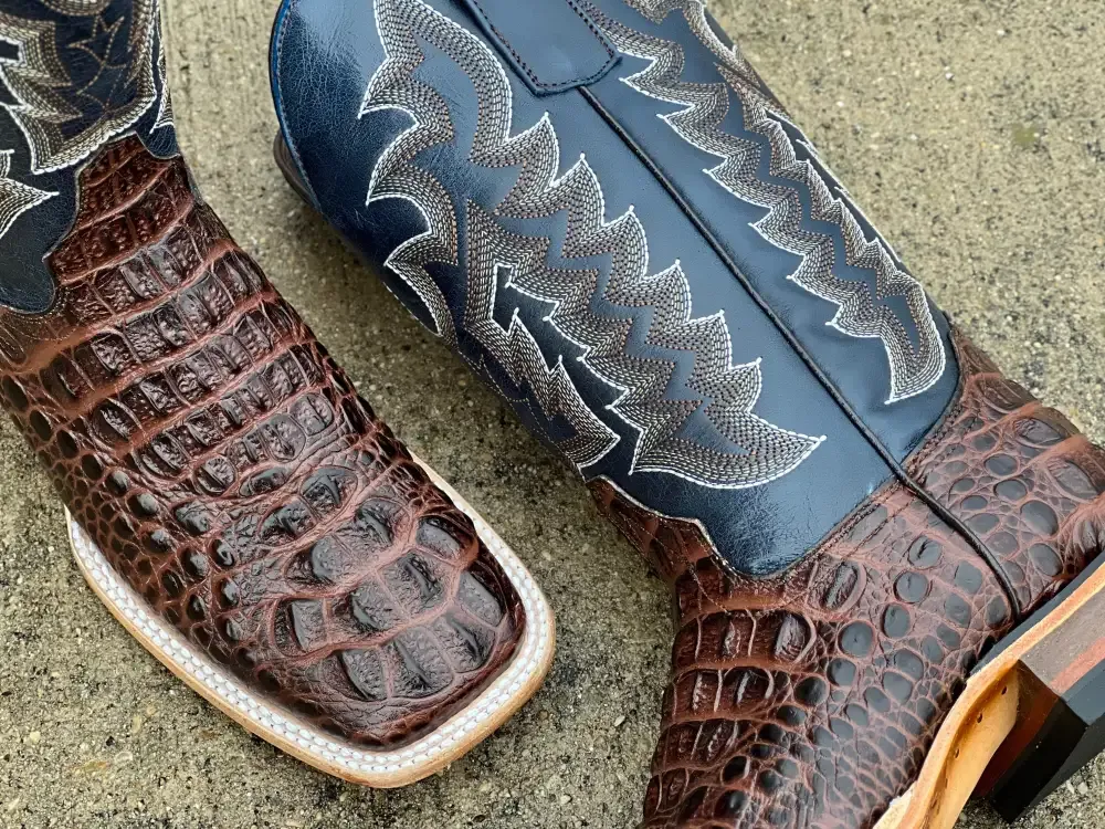 Men’s Brown Crocodile Leather Boots With Blue Shaft