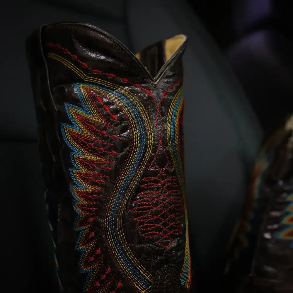 Men’s Chocolate Brown Genuine Ostrich Boots — Square Toe